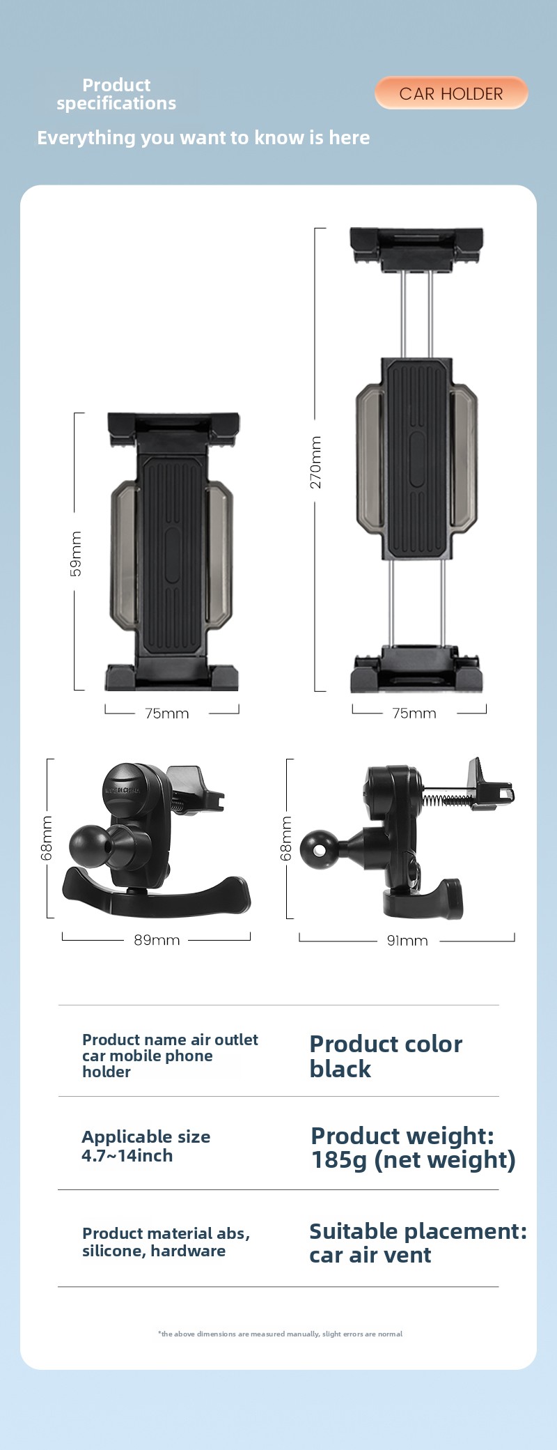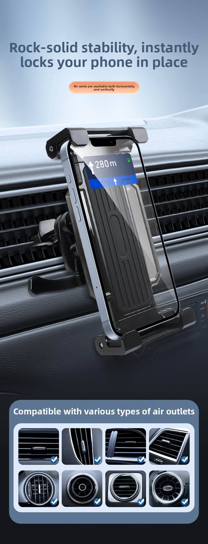 All-in-One Design – Combines the stability of a CD slot mount with the flexibility of a gooseneck and the convenience of a vent clip.