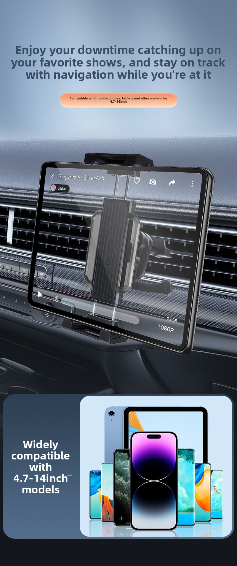 ✅ Universal Device Compatibility – Accommodates smartphones and tablets from 4.7" to 14". Perfect for iPhone, Samsung, Google Pixel, iPad, and other large-screen devices.