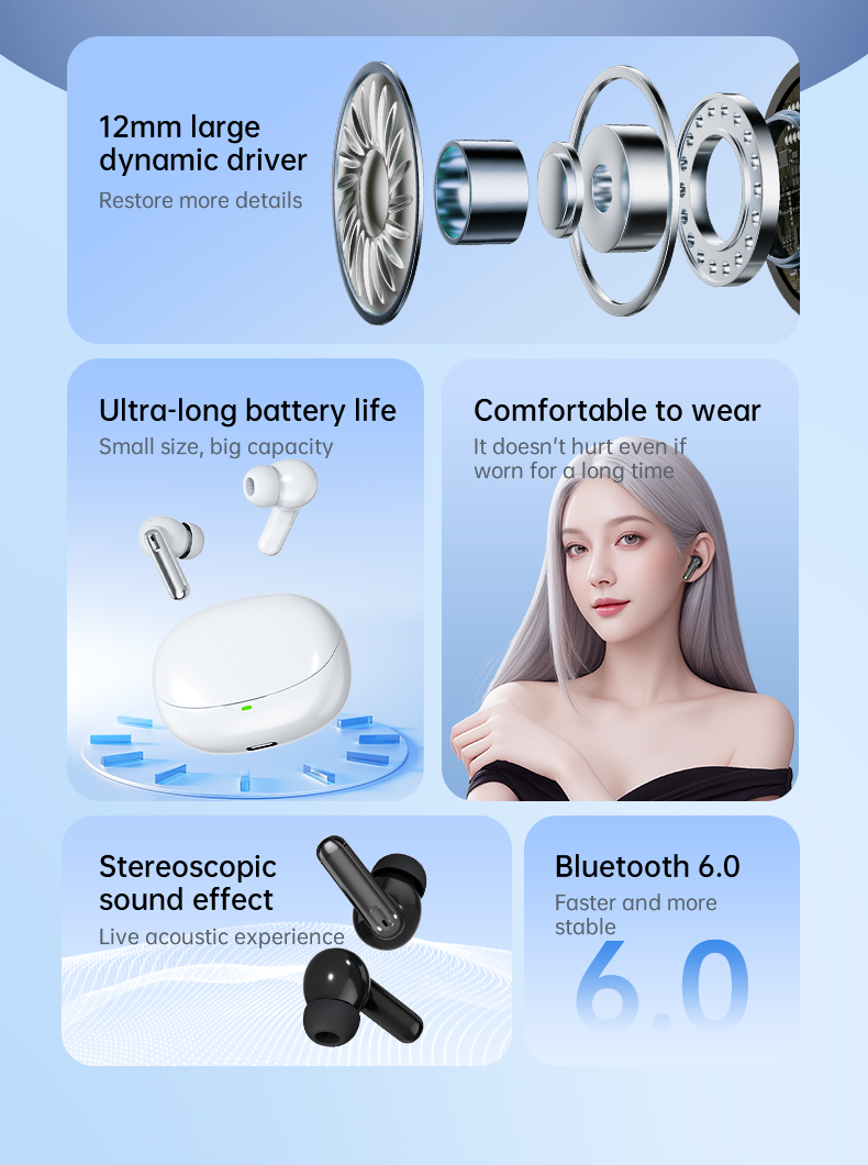 🎶 Rich Stereo Sound & 12mm Driver