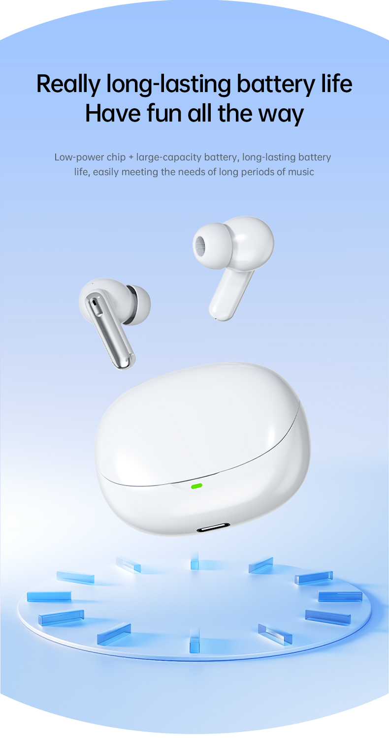 Quick 1.5-hour charging via USB-C gives you 3.5-4 hours of playtime. The compact charging case (230mAh) keeps your earbuds powered on the go, with an incredible 180-day standby time.