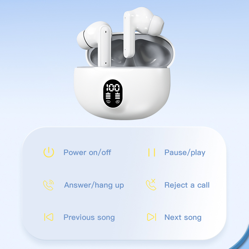 Crafted from lightweight yet durable ABS plastic, these in-ear earbuds offer a secure, comfortable fit for all-day wear. The compact, portable charging case slips easily into your pocket or bag.