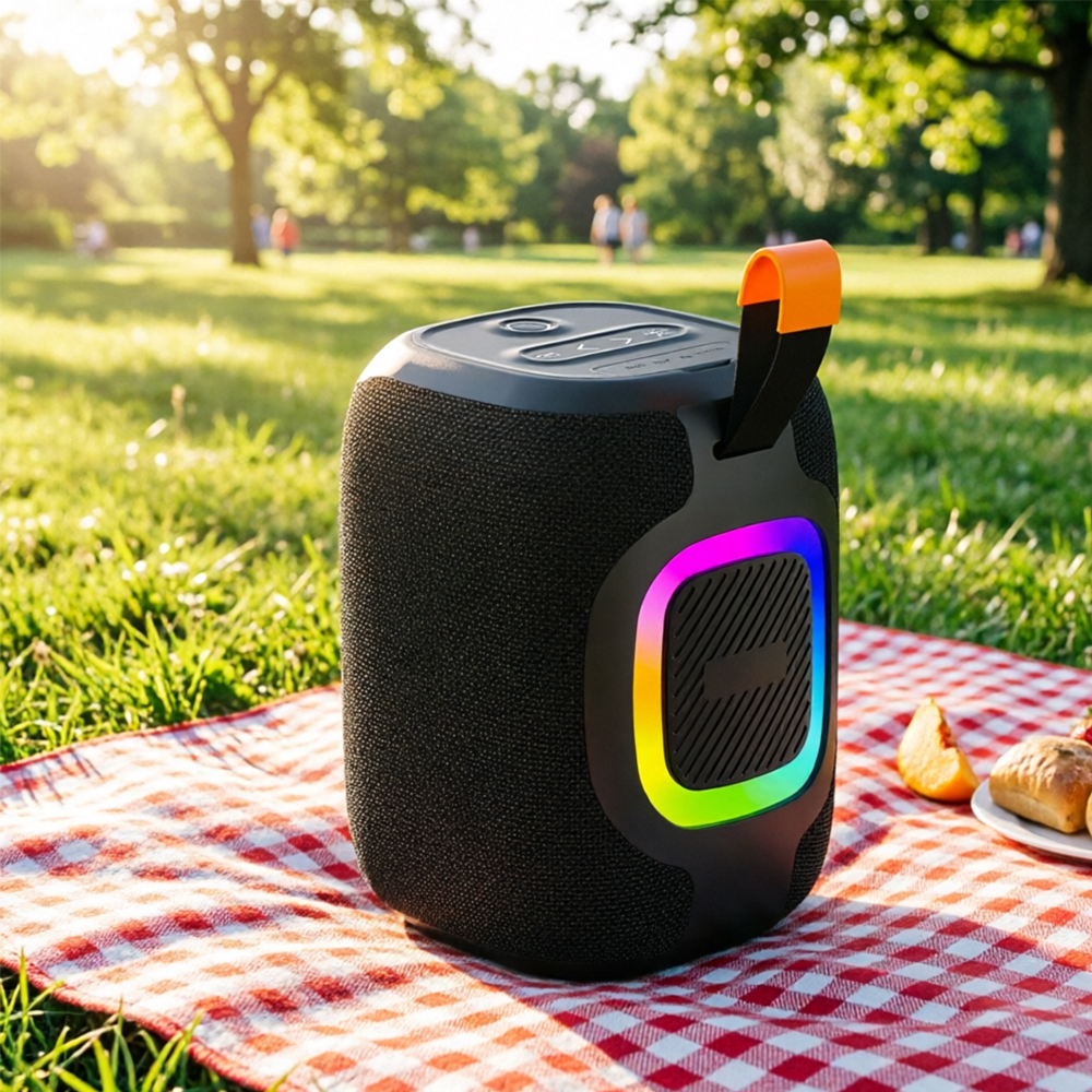 Engineered for travel, rugged use, and non‑stop fun, this compact powerhouse delivers bold 10W sound, dynamic RGB lighting, and all‑around playback options.